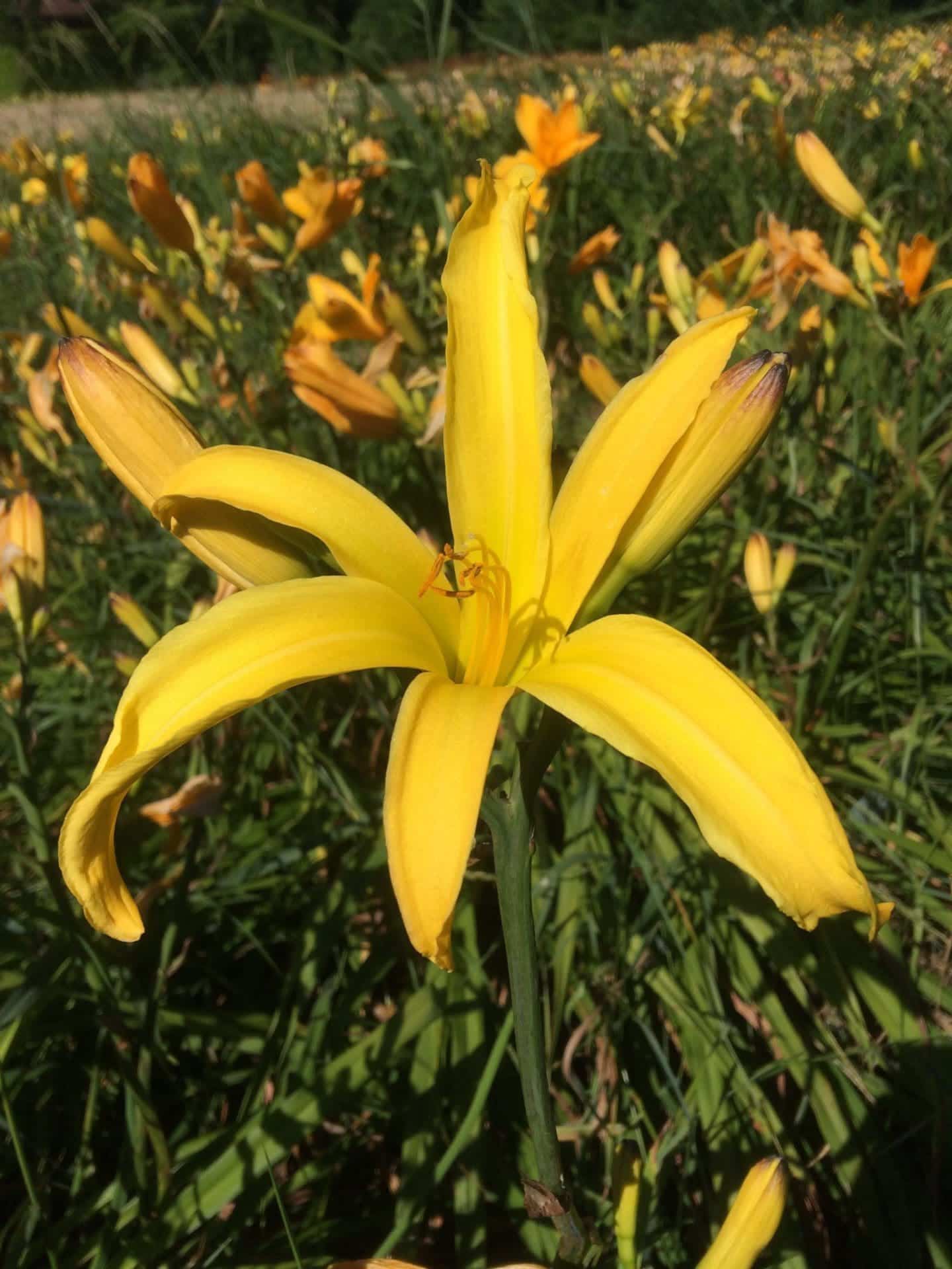 Une fleur jaune éclatante aux pétales fins, bien définis, créant une présence nette et élégante dans le jardin. Sa forme équilibrée et simple apporte une touche de fraîcheur et de légèreté.