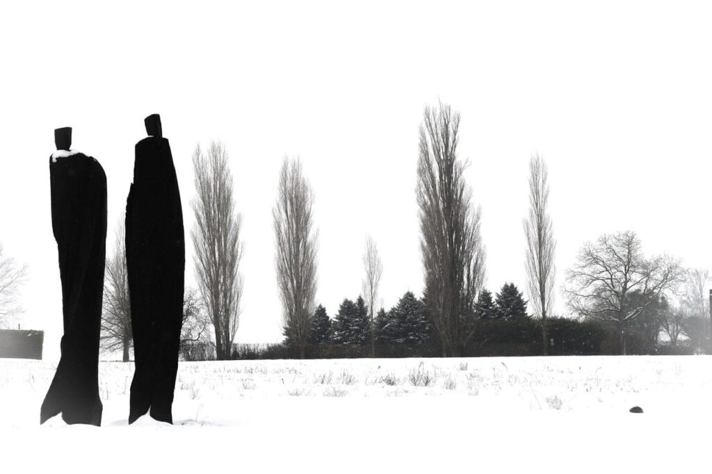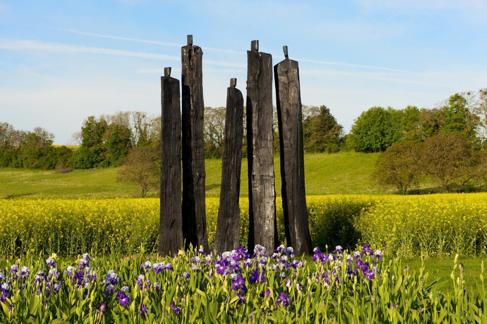 Lapie élabore une œuvre profondément liée à la mémoire individuelle et collective. Ses figures sombres, sans bras ni visage, évoquent des silhouettes humaines universelles, à la fois spectrales et rassurantes. Issues de troncs bruts qu’il sculpte et calcine, elles apparaissent comme des sentinelles intemporelles, incarnant la présence de l’homme dans le paysage. En investissant les lieux chargés d’histoire, ses sculptures interrogent notre rapport au temps, à la nature et à la condition humaine, imposant un langage plastique à la fois simple et universel.