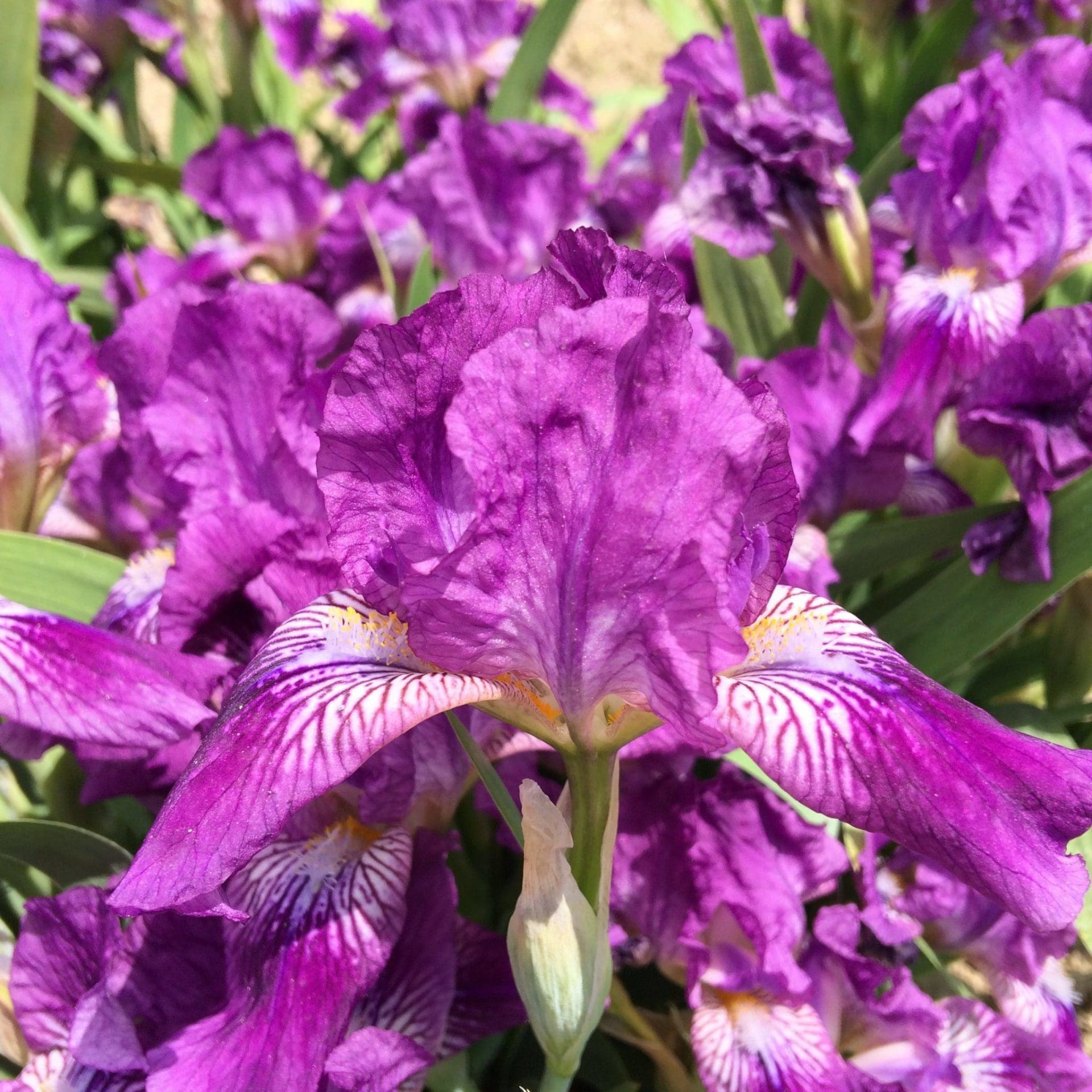 Gracieux iris lilas clair virant au pourpre au centre des sépales. Taille approximative: 35 cm