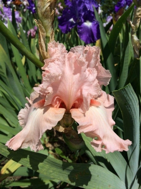 Cet iris rose clair très pur est mis en valeur par des barbes corail. Ondulé et finement dentelé, il fleurit à la mi-saison.