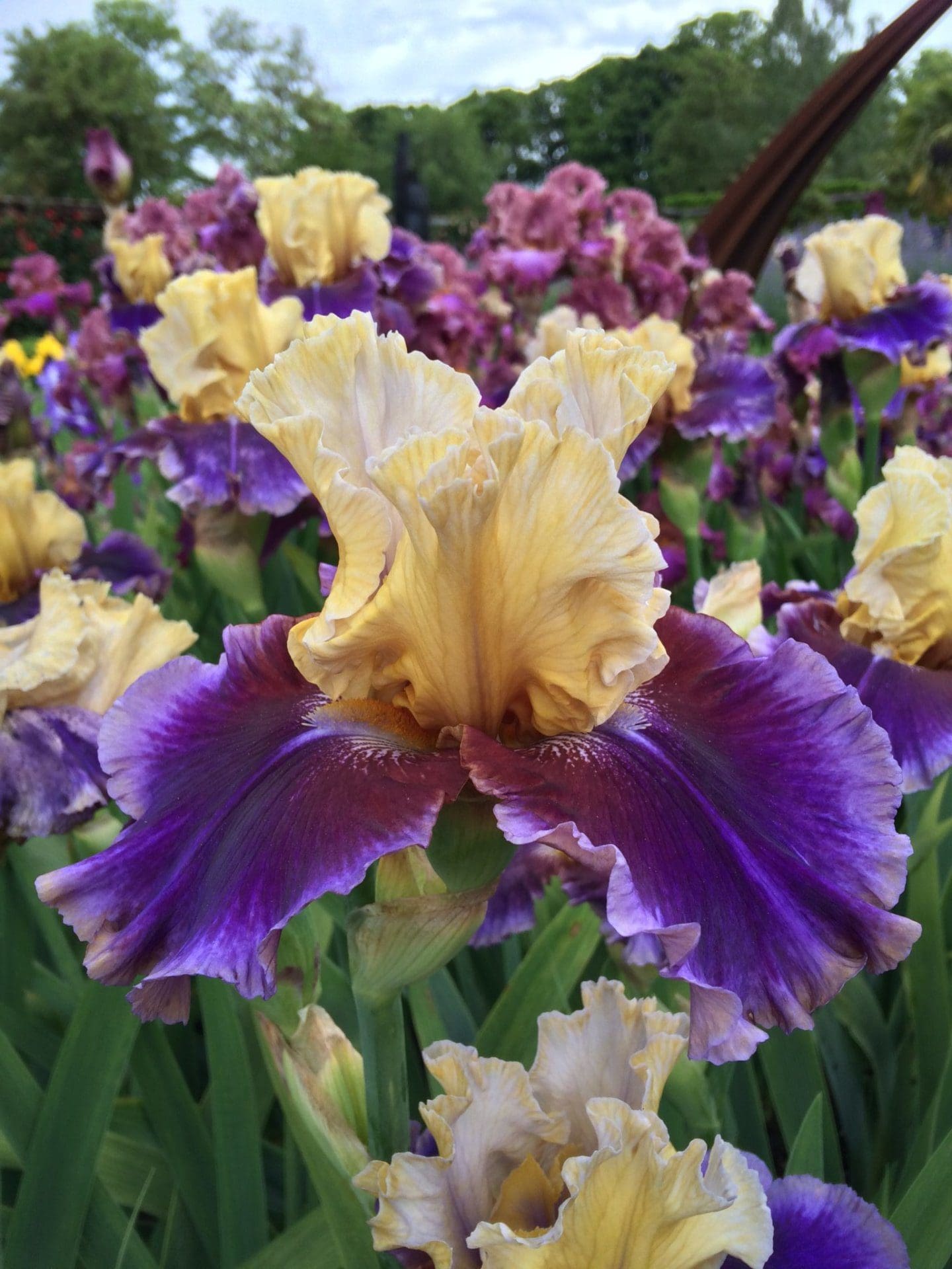 Iris remontant, la couleur citron pâle des pétales se tranforme en or cuivré au niveau de leurs nervures médianes. La couleur violette pelucheuse de ses sépales s’éclaicit sur leurs bords, accentuant leurs doux volants. Des tons brun rougeâtres recouvrent la moitié supérieure des sépales. Floraison fin-saison.